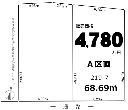〇おすすめポイント----------------------------------- ◆南道路面につき日当り良好 ◆建築条件なし売地 ◆間口約6.2mの整形地 ◆交通量の少ない閑静な住宅地 ◆全2区画分譲 ◆バス停まで徒歩3分 ◆建物参考プランご相談ください